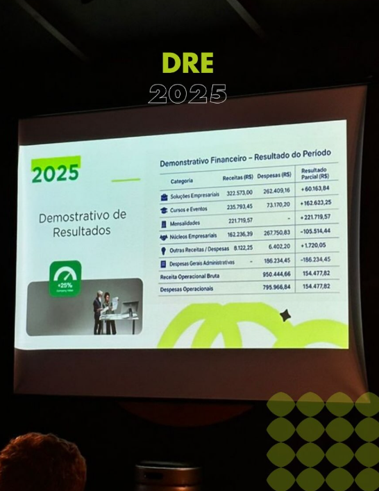 Durante a Assembleia, foi realizada a apresentação e aprovação das contas referentes ao exercício 2024, acompanhada da exposição detalhada do Demonstrativo de Resultados do Exercício (DRE) de 2025.